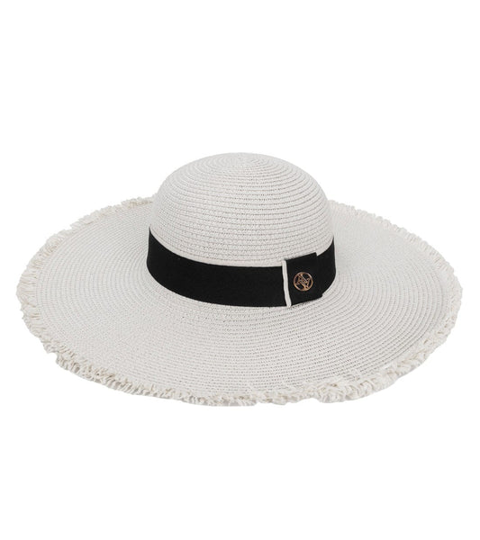 Adrienne Vittadini Frayed Brim Straw Floppy