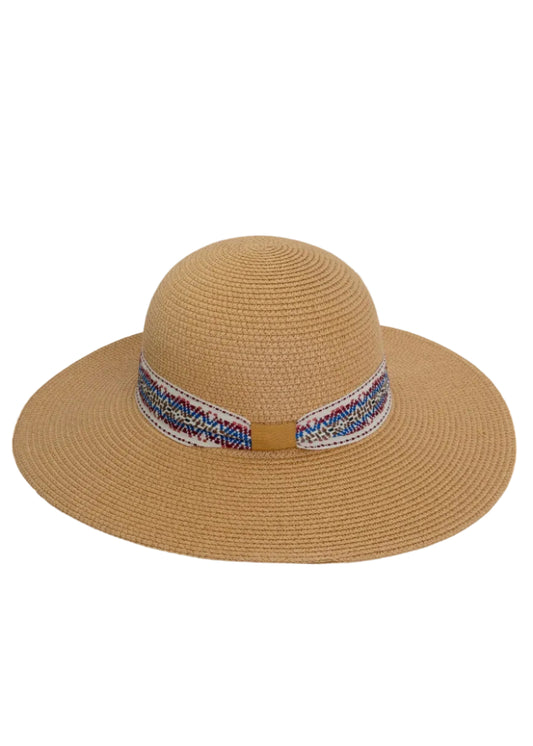 Adrienne Vittadini Straw Geometric Band Floppy Hat